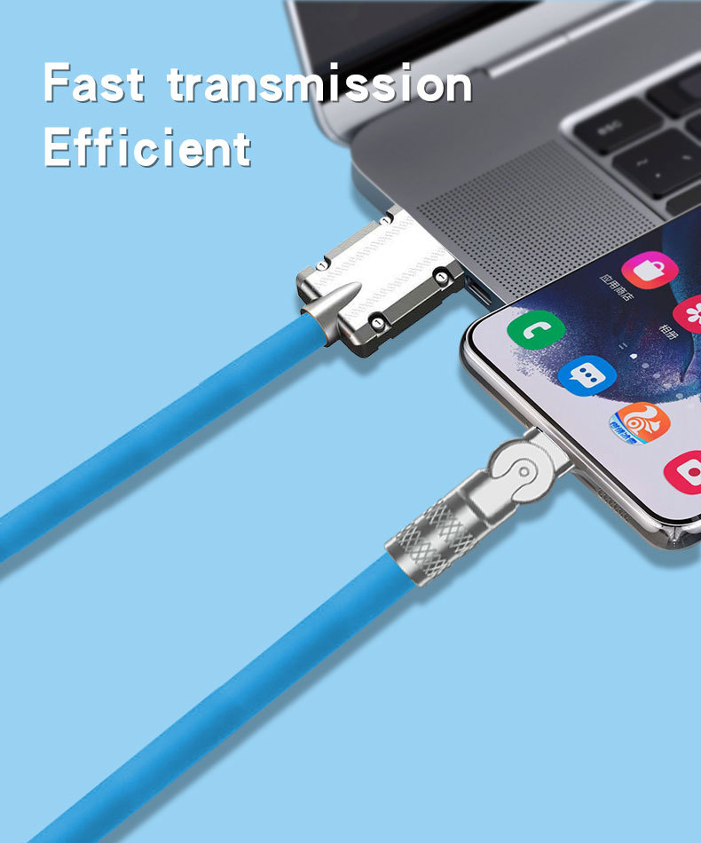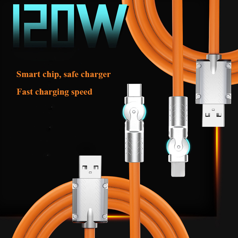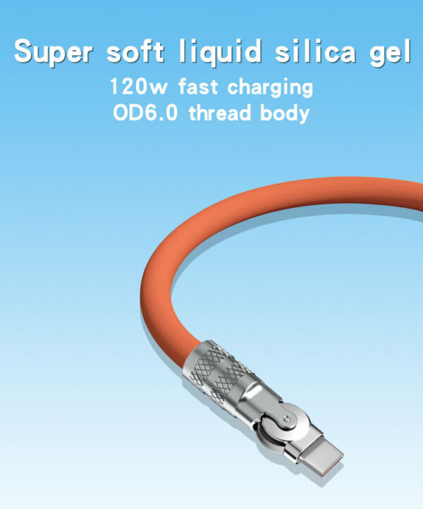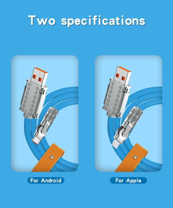 Unique Design Fast Charging OD6.0 Turntable Zinc Alloy Silicone Data Cable Lightning & Type-C
